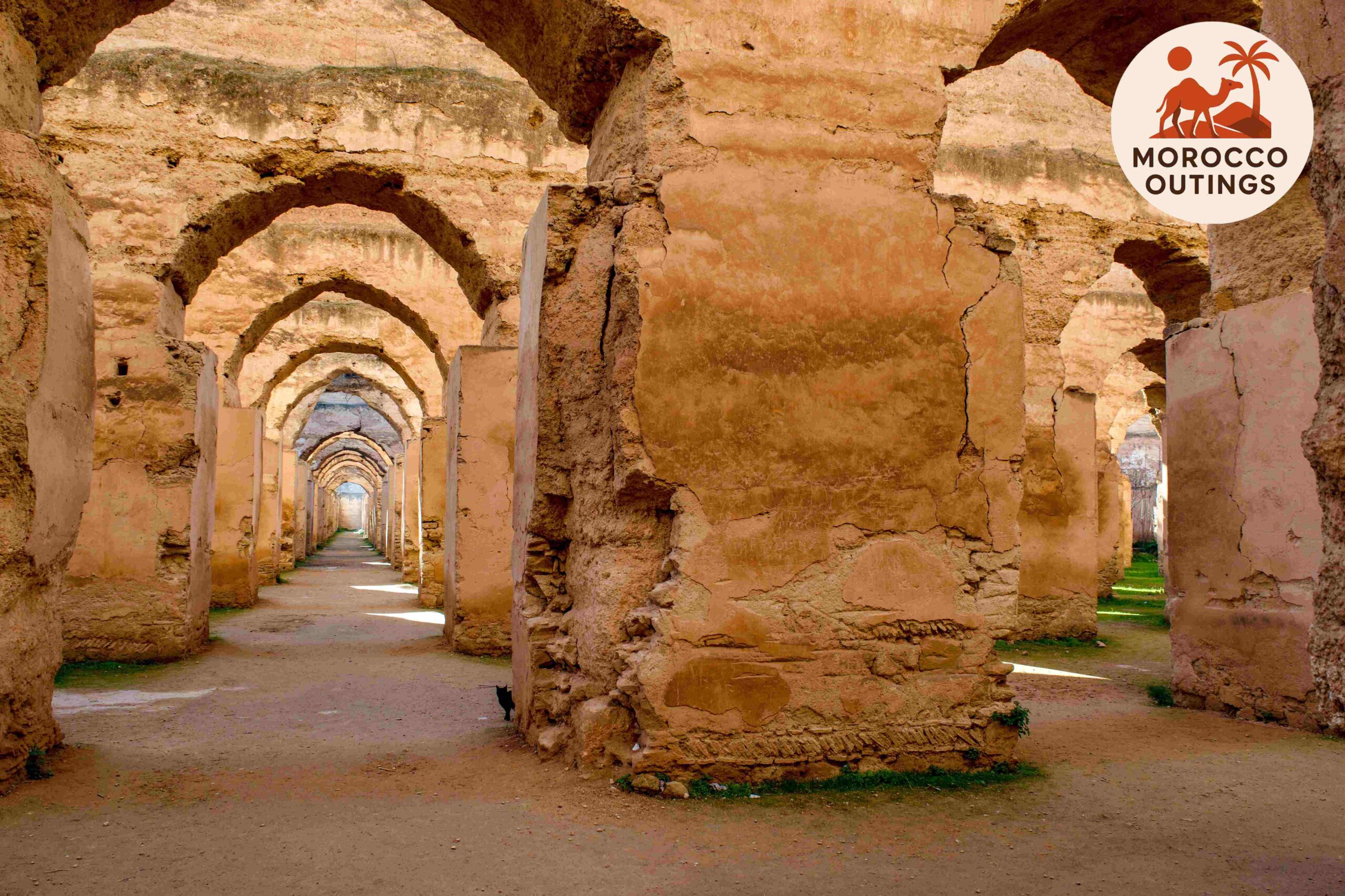The first stop in Meknes is the legendary Bab Mansour Gate, one of the most celebrated examples of monumental Moroccan architecture. Commissioned by Sultan Moulay Ismail in the early 18th century, this majestic entrance once served as the ceremonial gateway to the imperial city. The structure captivates visitors with its grand arched design, intricate zelij tilework, and towering marble columns reclaimed from Roman ruins. Standing before Bab Mansour, you immediately sense the balance of power and artistry it was designed to project. Passing through its massive archways offers a symbolic transition into the world of Morocco’s imperial splendor.