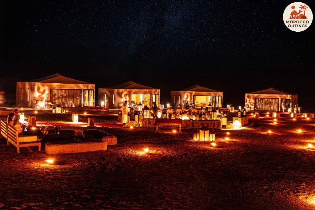 Upon arrival in the desert, travelers are greeted with a private setup overlooking the dunes. Soft mats, low tables, and lanterns create a cozy lounge area. Guests enjoy dates, nuts, and traditional mint tea while watching the sun dip below the horizon. The desert sunset retreat offers a rare moment of stillness and contemplation. Guides ensure all arrangements maintain guest safety, especially near dune edges, allowing full immersion in the landscape without concern.