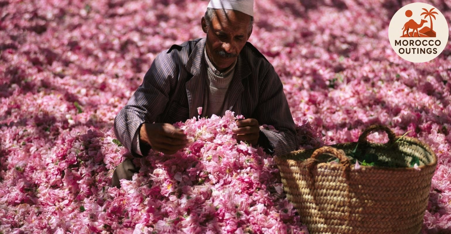 The route continues through the Valley of Roses, where the landscape softens into fertile strips of green framed by the Mgoun River. Here, a visit to a women-led cooperative showcases how local artisans transform Damask roses into perfumes, soaps, and essential oils using traditional copper distillation techniques. The cooperative emphasizes sustainable tourism, allowing travelers to witness craftsmanship while supporting community development. The mild fragrance of rose water lingers in the air as travelers observe careful hand-processing methods passed down through generations.