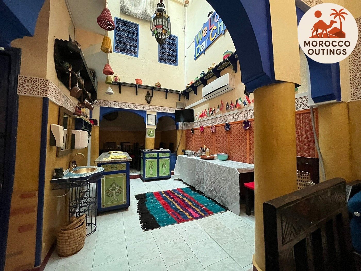 Your Cooking class and artisan workshops tour in Marrakech 2 nights begins with a smooth arrival at Marrakech Menara Airport, where a professional driver will greet you warmly. From here, you will enjoy a private transfer in a comfortable, air-conditioned vehicle to your traditional Moroccan riad located in the heart of the Medina. Along the short drive, you will catch your first glimpses of palm trees, ochre-colored walls, and the lively streets of Marrakech. Upon arrival at your riad, the staff will assist with your check-in and offer guidance to help you feel immediately at home. Staying in a riad, with its courtyard, mosaic tiles, and intricate architecture, sets the perfect tone for your Marrakech cultural experience. This is not just accommodation; it is your gateway to Moroccan heritage, design, and warm hospitality.